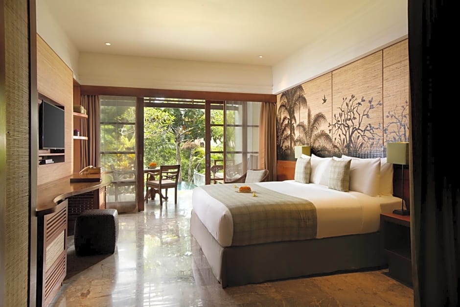 Adiwana Room includes either 2 single beds 80-130 width or a queen-size bed 150-154 width plus hairdryer, ironing set, safe, bathrobes, and slippers.